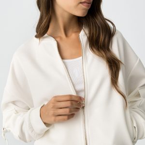 Tessuto in maglia , taglio dritto ,collo rotondo, maniche lunghe.